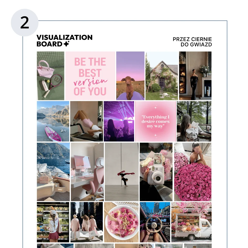 Rezultat: Otrzymujesz piękną tablicę, która motywuje do osiągania celów i pokazuje Twój postęp we wszystkich sferach życia.